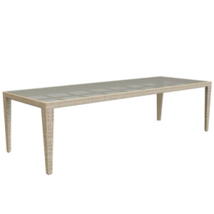 Обеденный стол PALOMA 220×100 от Skyline Design, созданный Ноэлем Ройо, сочетает функциональность с эстетической привлекательностью. Его фирменное плетение SEASHELL Flat-Flat (HDPE) в трёх вариантах ширины на раме из покрытого алюминия обеспечивает долговечность и стиль. Возможность выбора столешницы из закалённого стекла или фарфора позволяет персонализировать обеденное пространство. Как и вся продукция Skyline, этот стол изготовлен из перерабатываемых материалов, предлагая экологичный и одновременно элегантный вариант для трапез на свежем воздухе.